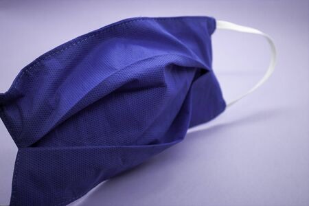 Blue anti-covid mask protection against diseases and viruses. New fresh mask on purple background