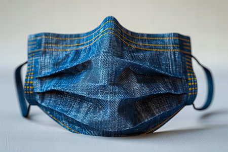 Digital artwork of dark blue denim fabric mask mockup, white background, front view