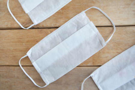 Stack of protectiv antivirus masks made by their hands from white fabric