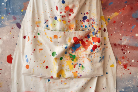 A beautifully flowing garment is displayed on a wooden hanger against an artistic background, showcasing vibrant colors and textures, perfect for fashion photography.