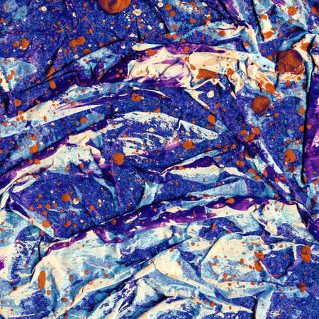 Contemporary abstract art illustration. Wrinkled paper texture paint drops. Colorful background expressive impressionist modern painting banner postcard poster. Bright grungy colored paper texture.