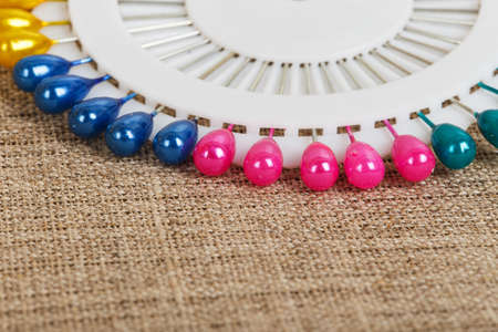 Set of colored pins on sacking