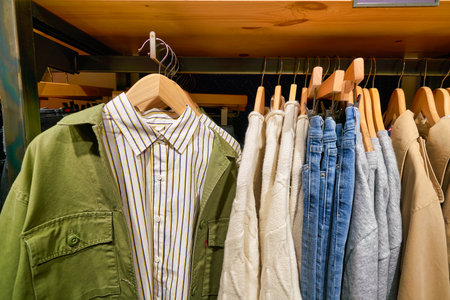 HONG KONG, CHINA - CIRCA JANUARY, 2019: clothes on display at a Levi's store in Hong Kong.