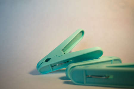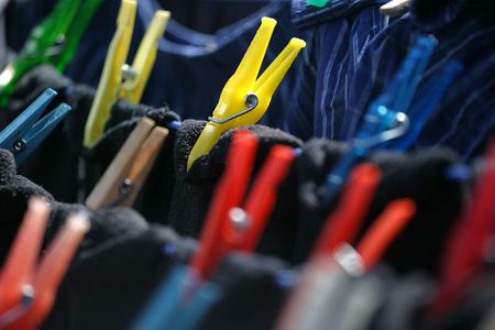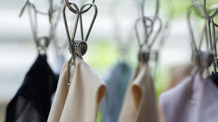 Hooks for drying wet clothes. Various colors close up. High quality photo.