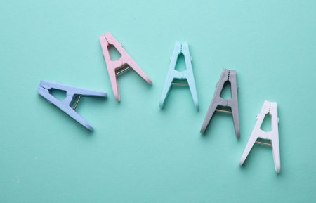 many colored clothespins on a blue background, as a substrate, pin clothes peg