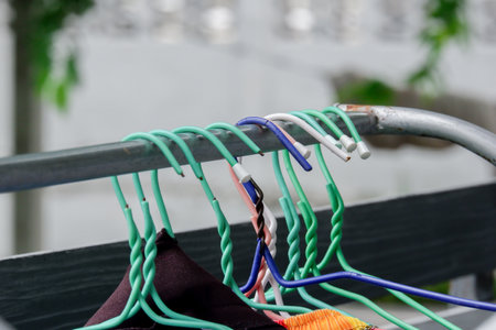 Old coat hangers of many colors