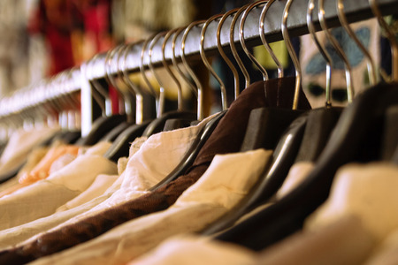 clothes on hangers in a clothing store, vintage color tone