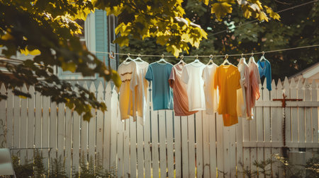 Clothesline with white fence behind it, AI generated Image