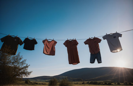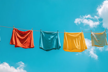 Freshly washed clothes drying on a line under a bright blue sky a perfect laundry scene