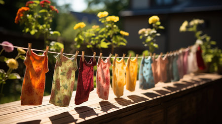 close-up of freshly washed clothes drying in the sun, created with generative ai