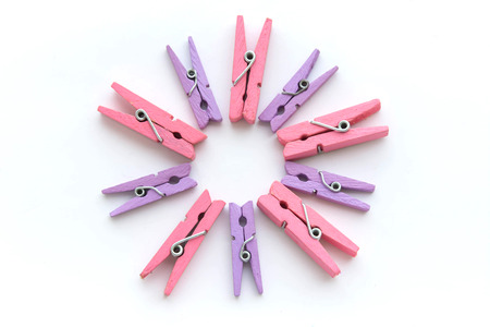 Color clothes-peg circle isolated on white background