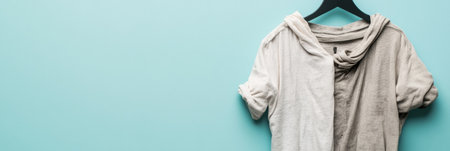 Freshly laundered clothes hang on a hanger while dirty clothing contrasts against a blue background. This highlights the importance of laundry.