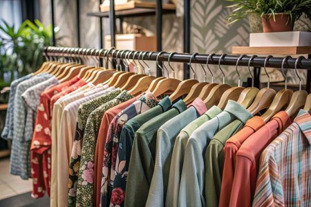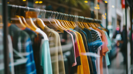 Close-up view of a boutique clothing rack with various stylish garments, textures, and vibrant colors in a trendy store. concept of fashion, clothing diversity, retail style.