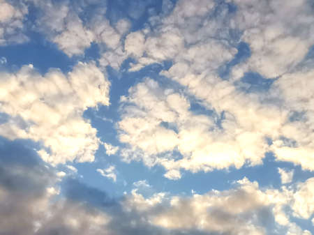 White cloudy with a blue sky.Wave clouds on the sky.Fluffy cloud and sunset