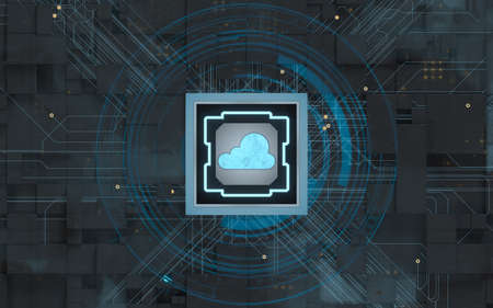 Chip and cloud computing, subject of science and technology, 3d rendering. Computer digital drawing,