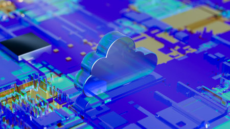 A luminous digital cloud hovers amid a network of glowing data lines and intricate circuit patterns, symbolizing advanced cloud infrastructure and con