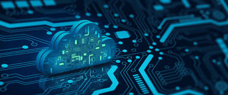 Cloud computing technology internet on Converging point of circuit with Abstract blue background. Cloud Service, Cloud Storage Concept. 3D illustration.