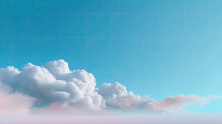 A captivating view of fluffy clouds lazily drifting across a vibrant blue sky, adorned with soft pastel tones, perfect for evoking a sense of peace and tranquility.