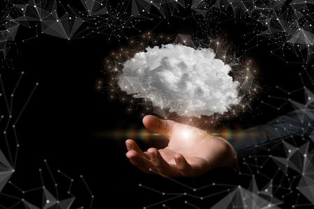 Man hand holding cloud computing concept in palm