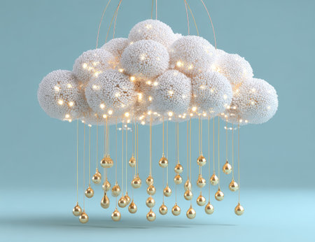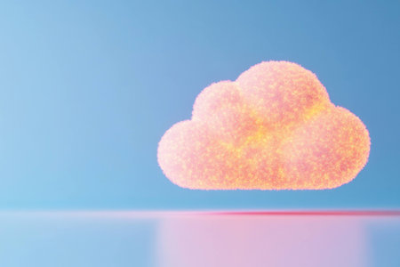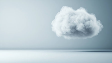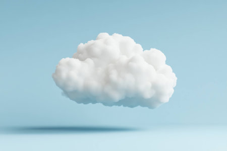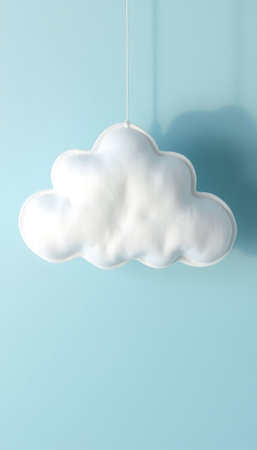 Hanging cloud on blue background with negative space. Digital 3D render, no AI.