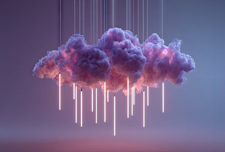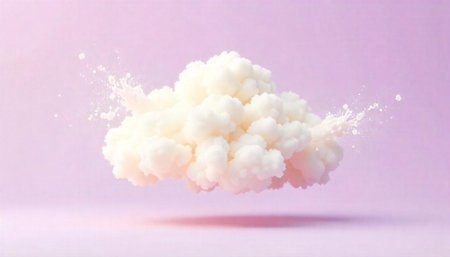 Dreamy cloudscape against lavender backdrop with soft splashes