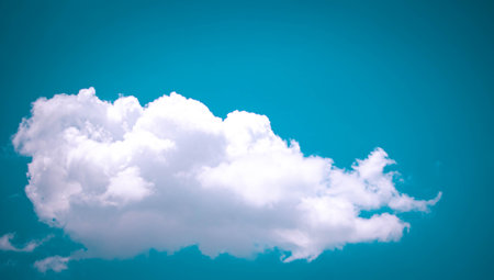 Beautiful cloudscape of nature with a single white cumulus cloud against a blue sky background during daytime. Easy to select and place into a layout.