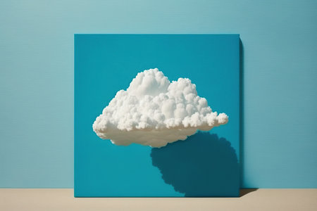 Fluffy White Cloud on Sky Blue Minimalist Background