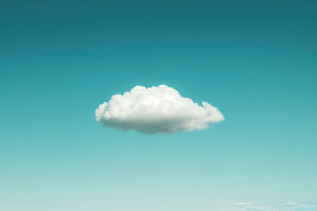A single fluffy cloud floats serenely in a clear blue sky during midday, creating a tranquil atmosphere.