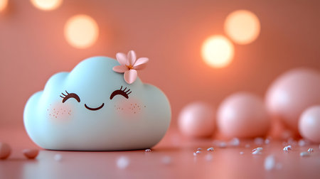 Cute 3D Cloud Illustration with Flower