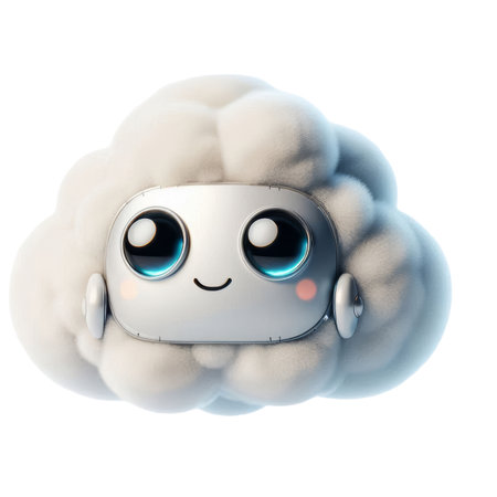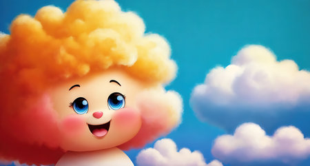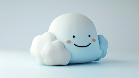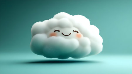 A charming, soft, and fluffy cloud character with a delightful, smiling face, exuding warmth and happiness.