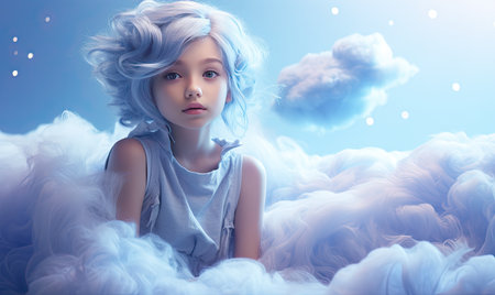 The ethereal anime girl sat gracefully on the fluffy clouds. designe