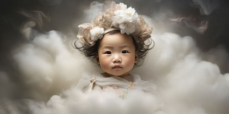 An AI generated illustration of a baby against wispy clouds filled with smoke