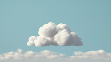 A single, perfectly formed fluffy cloud hovers weightlessly in a serene, minimalist environment. This 3D rendering evokes a sense of calm, imagination, and the abstract nature of ideas, data, and dreams. Ideal for concepts of tranquility, cloud computing, or creative thought.