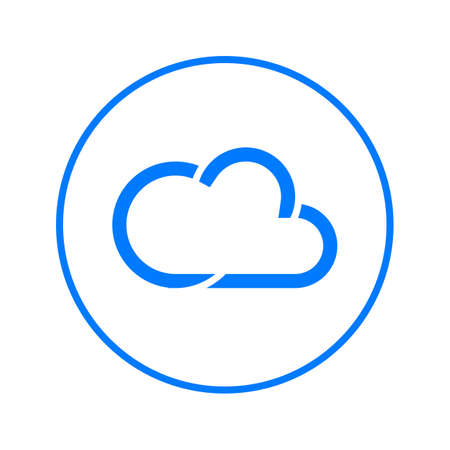 Simple cloud with light shadow isolated on blue background. Icon for weather or technology concept. Vector illustration in trendy flat and linear style