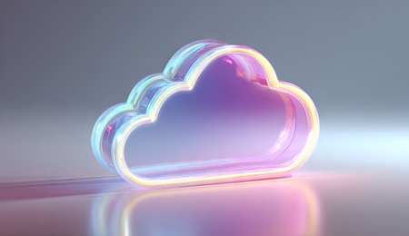 Abstract digital cloud with glowing lines and particles, representing cloud technology and data transfer, suitable for tech and innovation themes