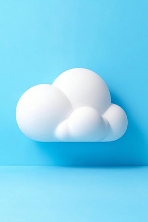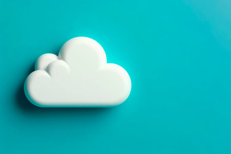 A fluffy, white cloud is depicted in a three-dimensional style, set against a bright, solid blue background. The soft lighting creates subtle shadows beneath the cloud, giving it depth. This vector illustration could be suitable for various design projects, including digital marketing materials and educational content.