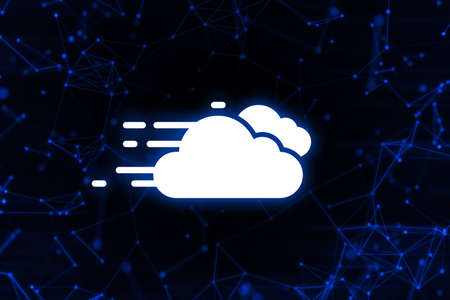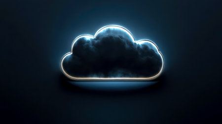 Close-up, Abstract minimal cloud computing icon with dark background, Generative AI