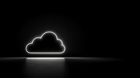 A cloud computing icon glowing teal center, digital technology concept, futuristic and minimal