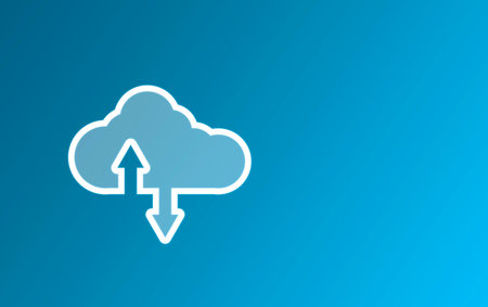 This image features a stylized blue cloud with an upward-pointing white arrow on a transparent background. The cloud is centrally positioned, creating a minimalistic and clean design. Ideal for web design, app interfaces, or digital presentations.