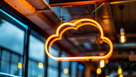 Data center housing cloud servers with bright status indicators for efficient monitoring