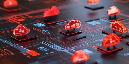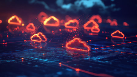 Cloud Computing Network, Data Storage Technology, Digital Transformation, Cybersecurity Concept.