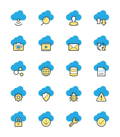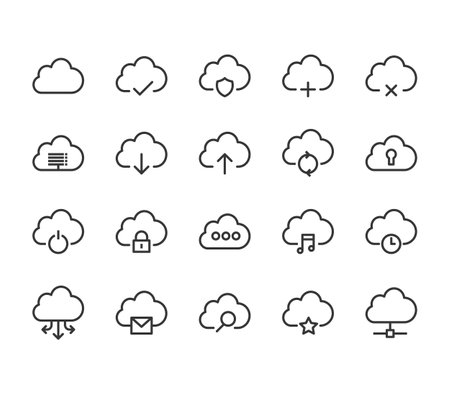 Simple Set of Computer Cloud Related and Cloud Hosting related Vector Line Icons. Cloud storage and Network Vector icon set.