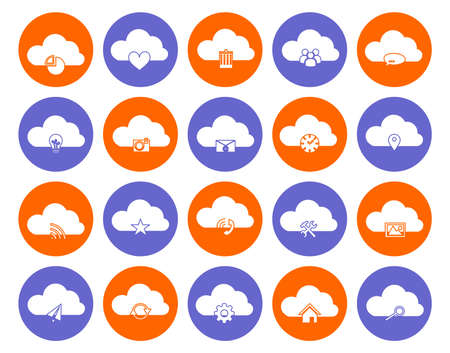 Set of cloud icons in trendy flat style isolated on blue background. Cloud symbol for your website design, logo, app, UI. Vector illustration, EPS10. Flat vector simple element graphics - vector.