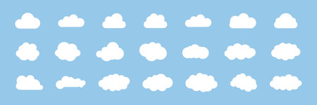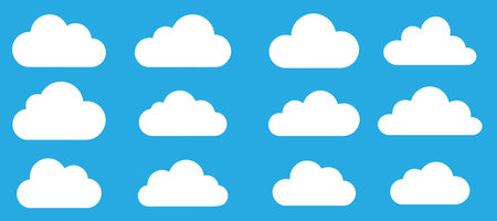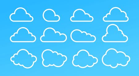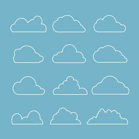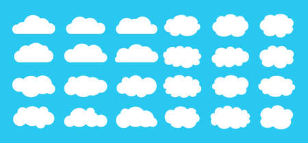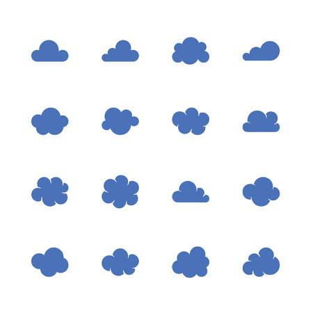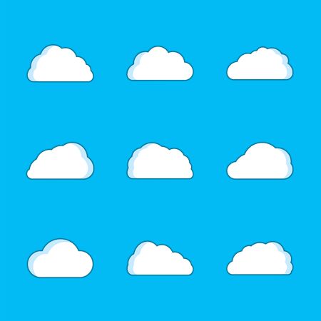 Set of clouds. Simple clouds isolated on blue background, vector illustration.