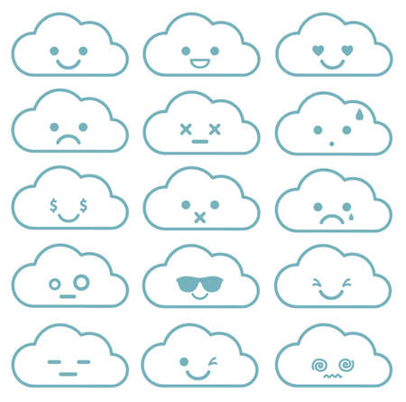 Clouds set isolated on a blue background. Simple cute cartoon design. Modern icon collection. Realistic elements. Flat style vector illustration.