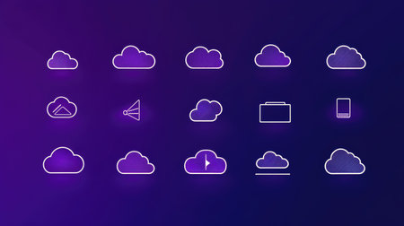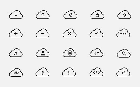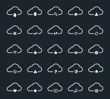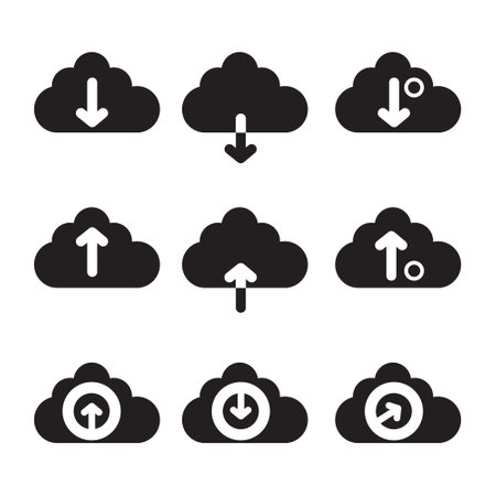 Web cloud icons for streaming, syncing, and file sharing in minimalist vector style