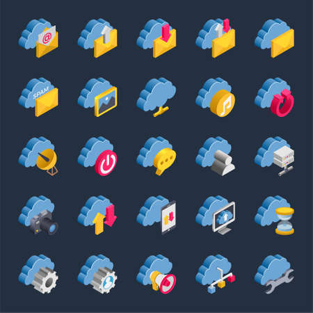Cloud computing icon set. 3d illustration. Isolated on white background.