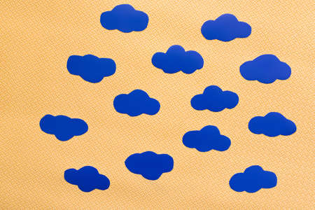 Elements in shape of blue clouds on paper black background. Greeting card design. Flat lay. Top view