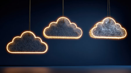 Creative Lighting Concept with Hanging Cloud Shapes in Sparkling Design for Modern Interior Decoration and Contemporary Art Displays
