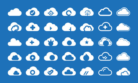 A collection of clean, solid icons representing various cloud computing concepts and digital services, perfect for web and app design.